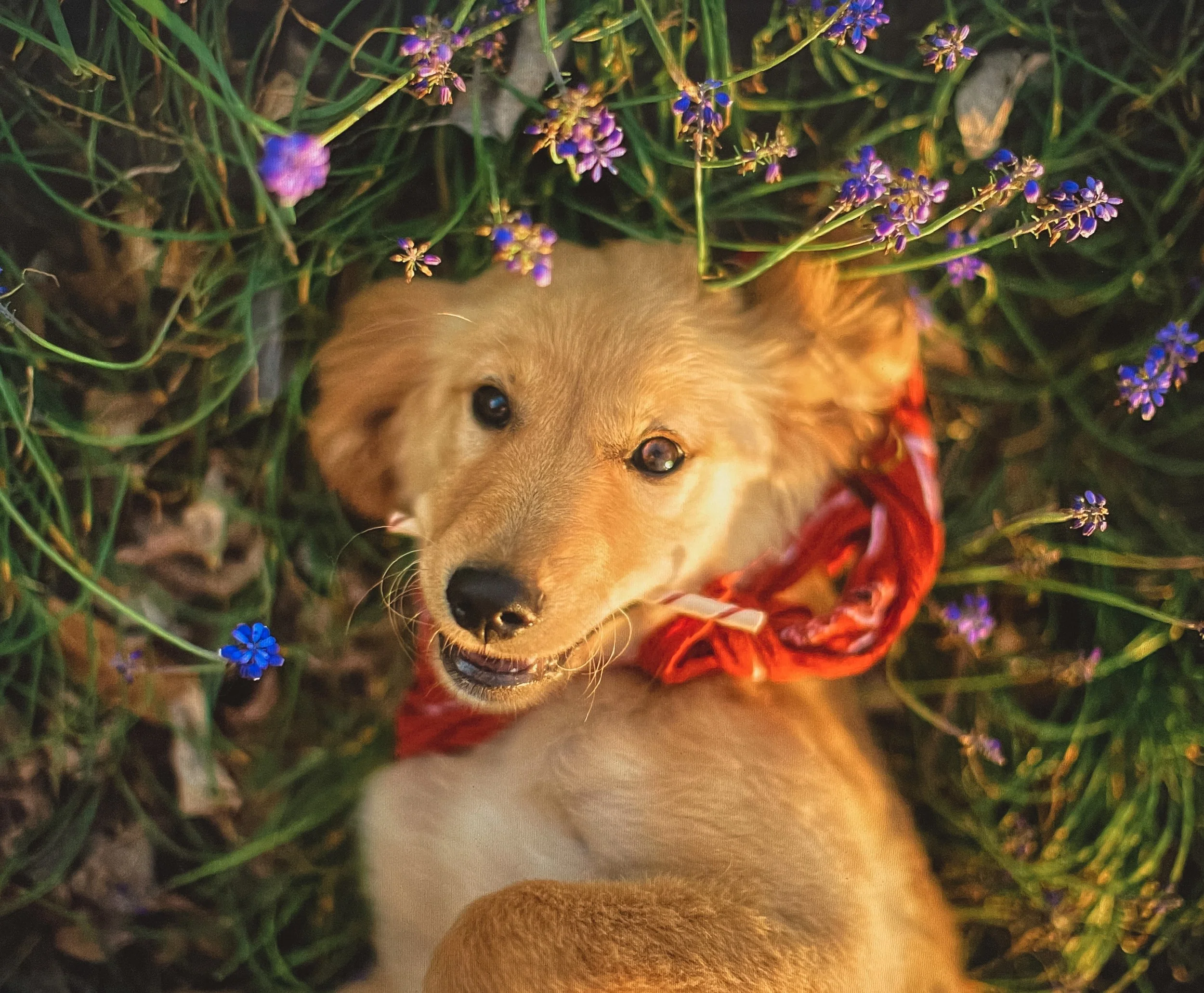 You can find me rolling in the grass, snuggling my momma and being her emotional support dog. (It’s hard work)