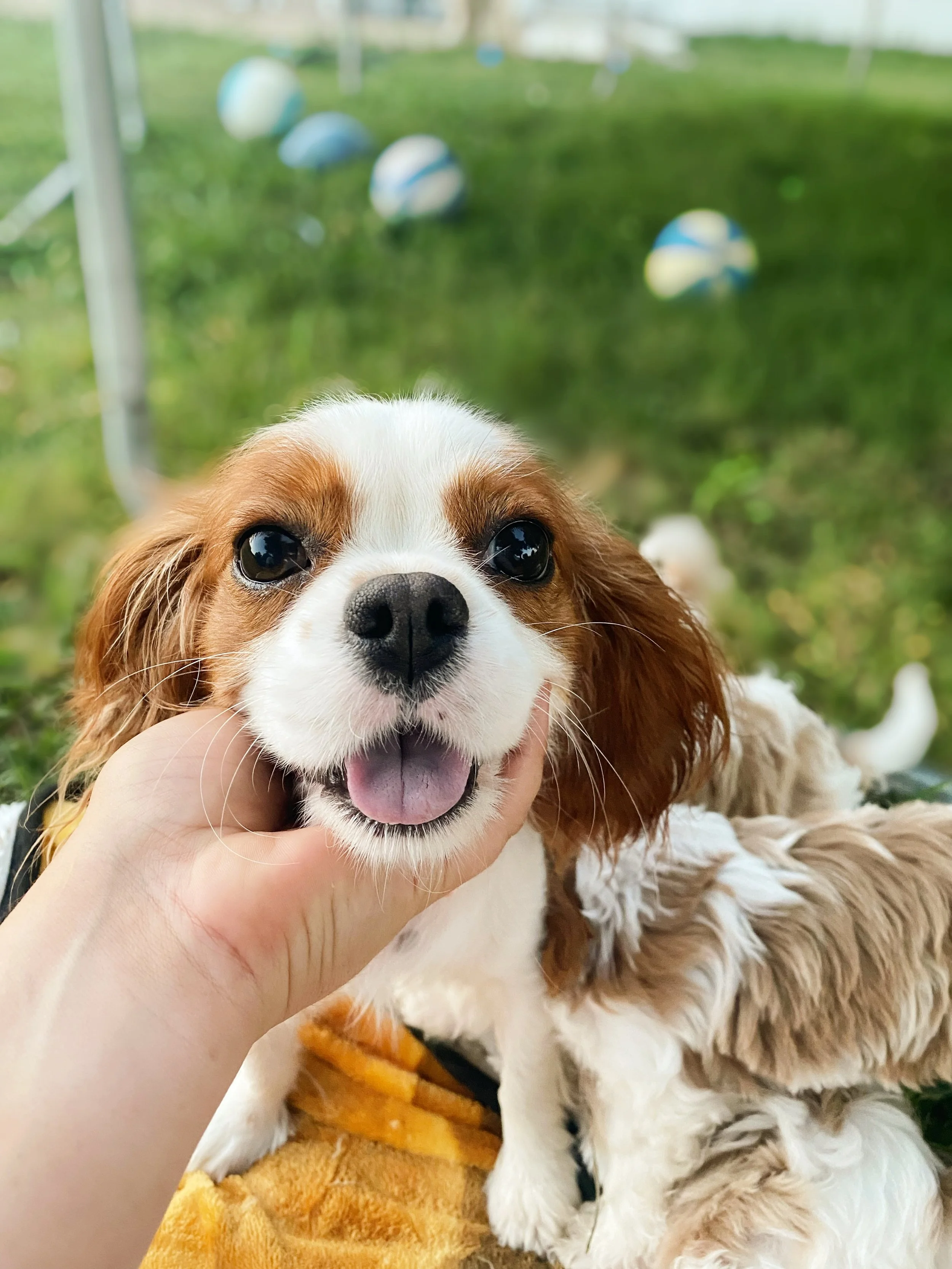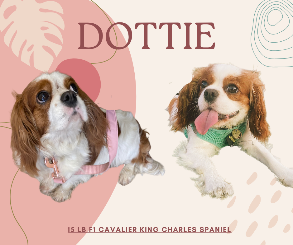 I am the sweetest Cavalier King Charles Spaniel. Dottie is full AKC papered with champion pedigree bloodlines, and I weigh between 13-15lbs.