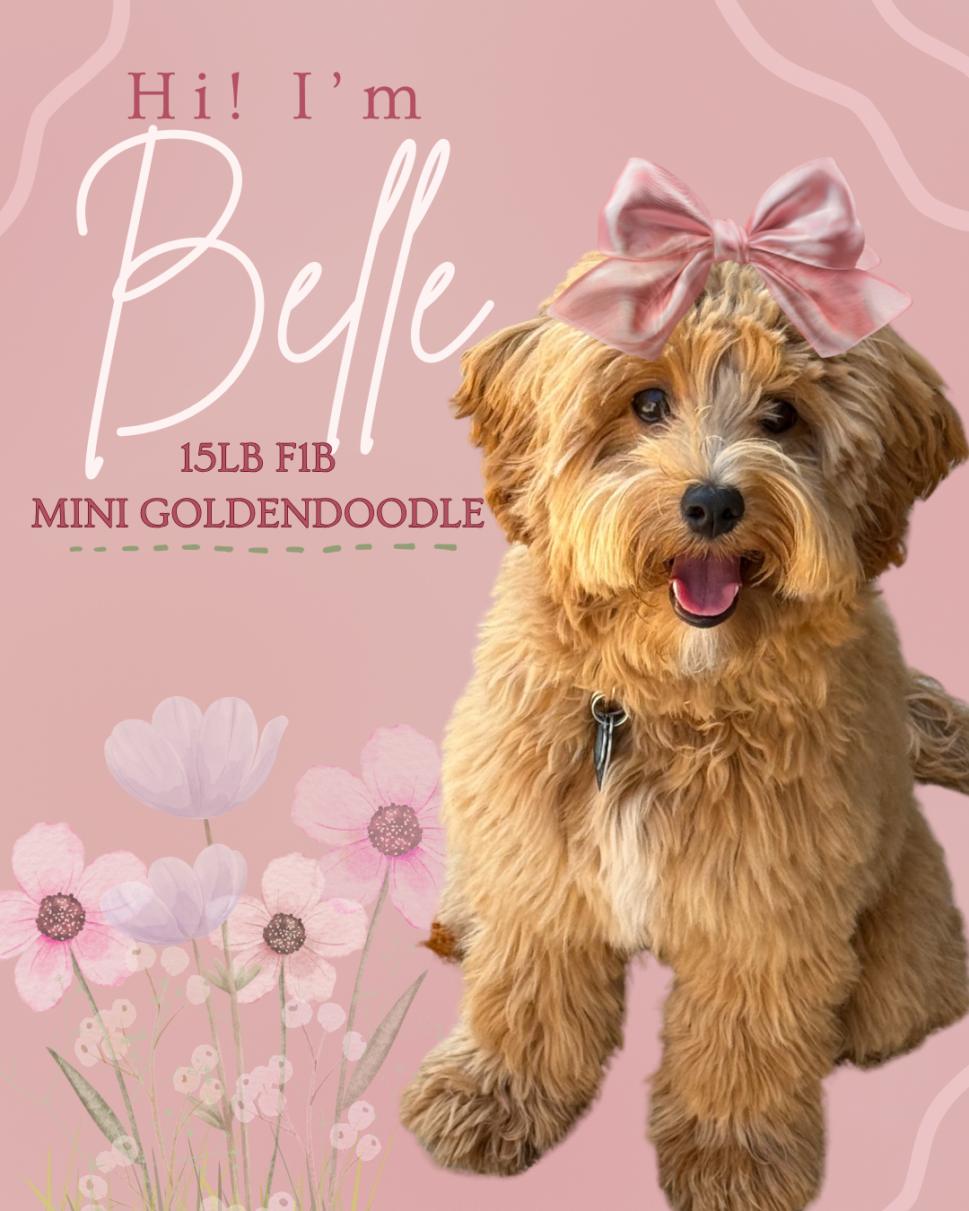 Belle is a 15lb micro-mini goldendoodle. We are so excited for toy goldendoodles from Belle end of 2026!